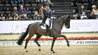 Charlotta Rogerson brille à Bâle avec une superbe 2ème place en Coupe du Monde FEI de dressage, grâce à un Grand Prix Freestyle noté à 81.290 % avec Bonheur de la Vie. Déjà 2ème vendredi, la Suissesse a battu ses records personnels.