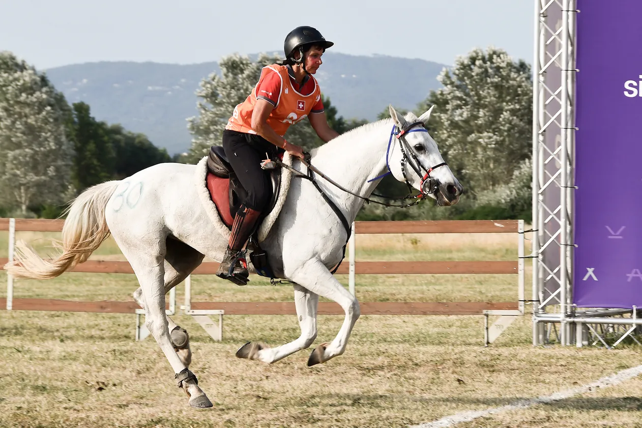 Bei dem Distanzritt über 160 Kilometer in den Hügeln und am Ufer des Lago Trasimeno zeigte sich, dass sich strategisches Reiten auszahlt. Unter den anspruchsvollen Bedingungen mit hohen Temperaturen schafften es von den vierzehn angetretenen Teams nur vier in die Wertung – darunter die Schweiz. Barbara Lissarrague mit Faribole de Lap (Einzelwertung Rang 11), Nina Lissarrague mit Kenya Mouthes (Einzelwertung Rang 13) und Audrey Acquistapace mit Sarky de Saulnot (Einzelwertung Rang 15) erreichten das Ziel mit Pferden in guter körperlicher Verfassung. Andrea Amacher mit Sana’a du Roc’h und Alexandra Frey mit Kariym mussten den Ritt aufgrund von Gangunreinheiten ihrer Pferde vorzeitig beenden.