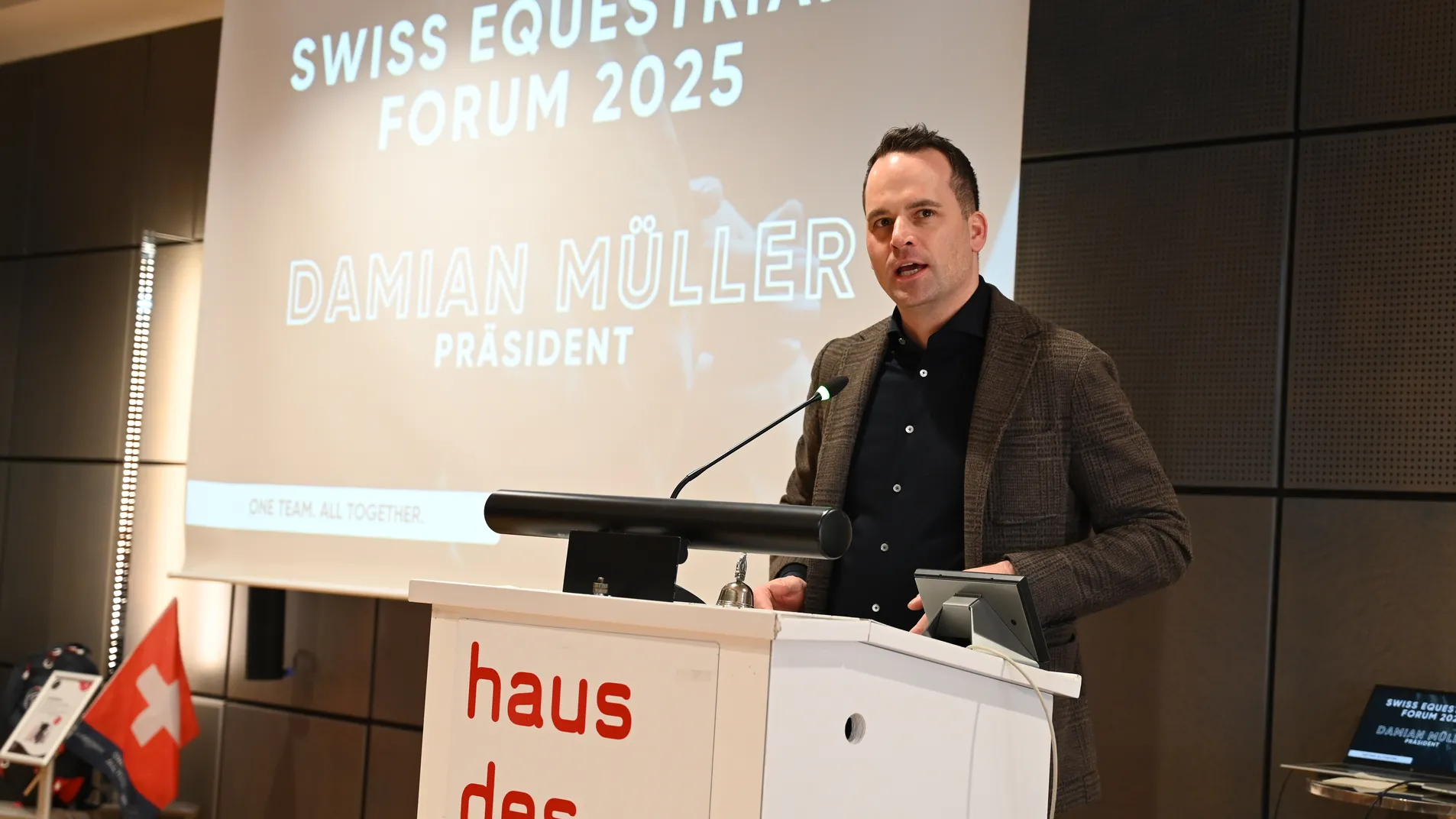 Der Präsident von Swiss Equestrian, Damian Müller, betonte in seiner Eröffnungsrede die Bedeutung des Swiss Equestrian Forum, um die Zukunft des Pferdesports zu gestalten: «Zum ersten Mal kommen hier alle Disziplinen zusammen: Dressur, Springen, Vielseitigkeit, Fahren, Endurance, Voltigieren, Western, Para-Dressur und Vierkampf. Der Austausch zwischen diesen Disziplinen ist enorm wichtig, denn wie es so treffend heisst: Zusammen kommen wir weiter als allein.» Er betonte, was unseren Sport so einzigartig macht: «Es ist die tiefe Verbindung zwischen Mensch und Pferd – ein Zusammenspiel, das auf Respekt und Vertrauen basiert. Unser Sport vermittelt Werte wie Fairness, Teamgeist und Durchhaltevermögen. Diese Werte müssen wir bewahren, leben und weitergeben. Unsere Funktionäre und Organisatoren sind das Rückgrat des Pferdesports. Dessen Arbeit im Hintergrund ermöglicht den reibungslosen Ablauf von Veranstaltungen und legt die Grundlage für sportliche Erfolge – vom Breitesport bis zum Spitzensport!».