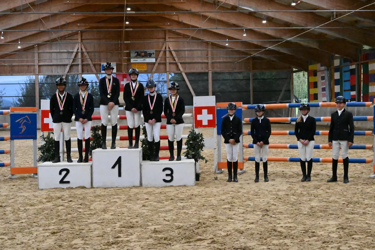 Auch die Junioren B (10–15 Jahre) massen sich über 3000 Meter im Laufen, über 50 Meter im Freistilschwimmen sowie in einem Dressurprogramm und im Stilparcours über Hindernisse von 80 cm. Die Schweizer Meisterschaftsmedaillen wurden wie folgt vergeben: